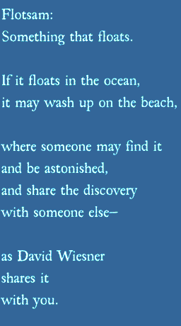 FLOTSAM has won the 2007 Randolph Caldecott Medal for the most distinguished American picture book for children. "Telling tales through imagery is what storytellers have done through the ages. Wiesner's wordless tale resonates with visual images that tell his story with clever wit and lively humor," Caldecott Medal Committee Chair Janice Del Negro